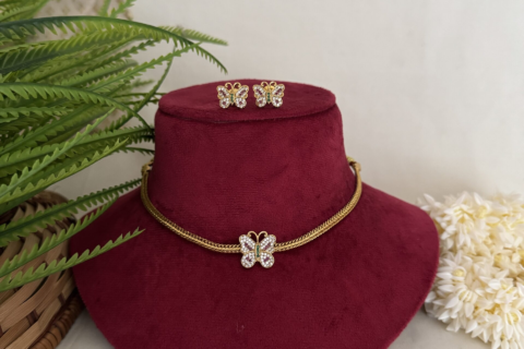 The fine detailing not only enhances the visual appeal but also reflects the artistry behind traditional jewellery making. The gold-toned finish complements the colorful stones, creating a balanced and graceful design that feels both classic and fashionable.