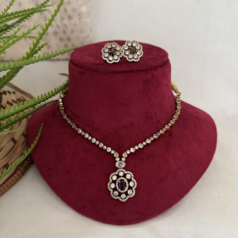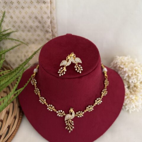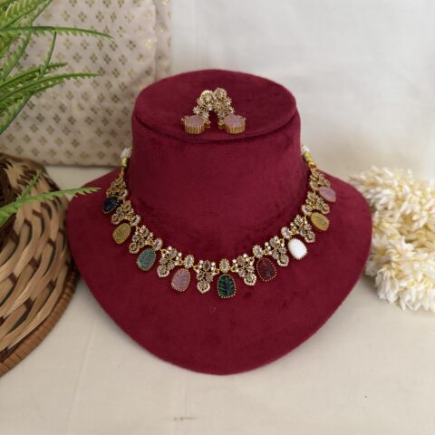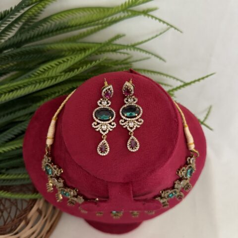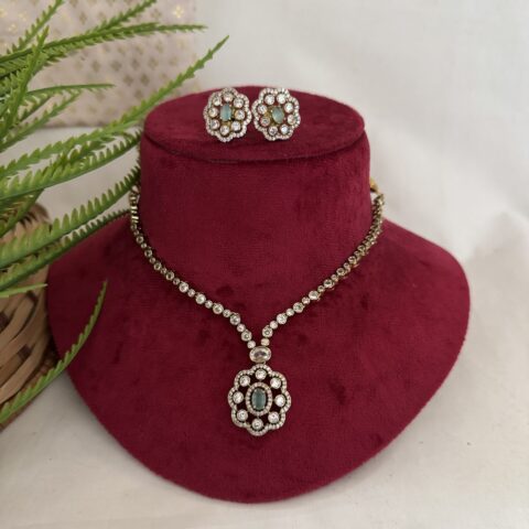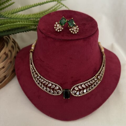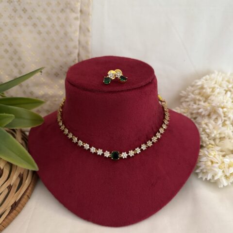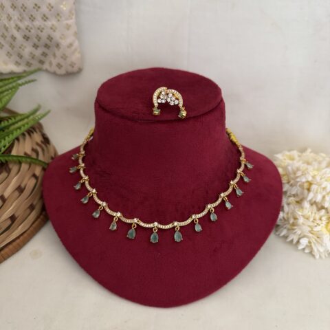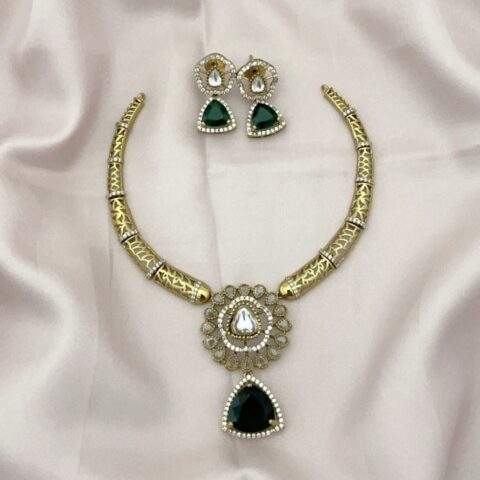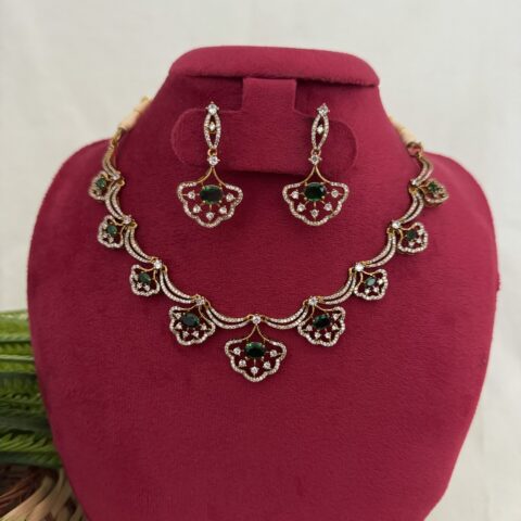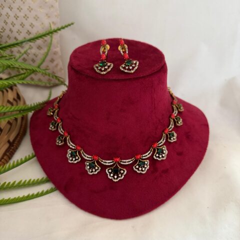 AD Coral Party Wear Diamond Necklace With Earrings – Green