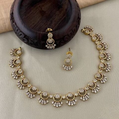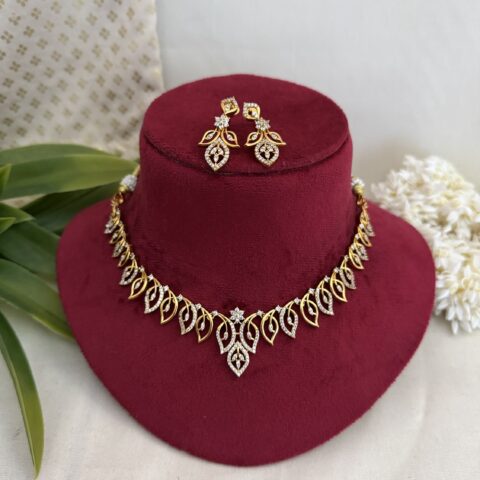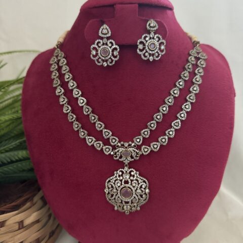 AD Coral Party Wear Diamond Necklace With Earrings – Pastel Pink