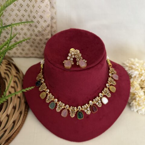 Saanvi Tearstone Necklace – Pastel Pink