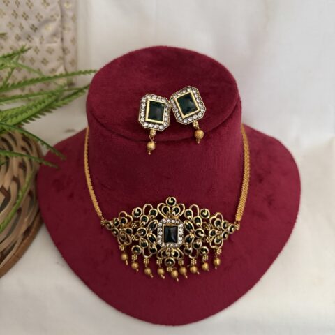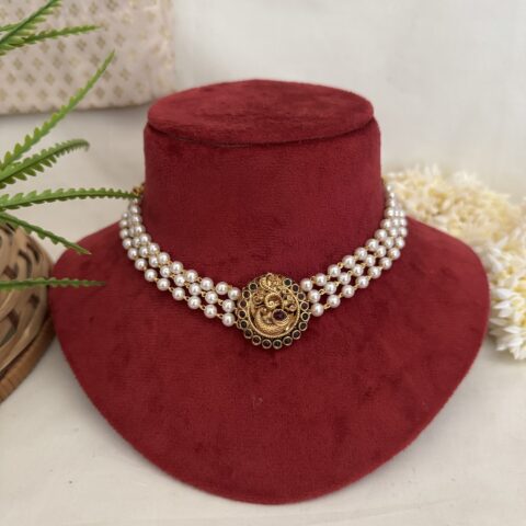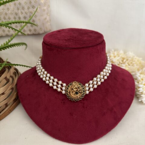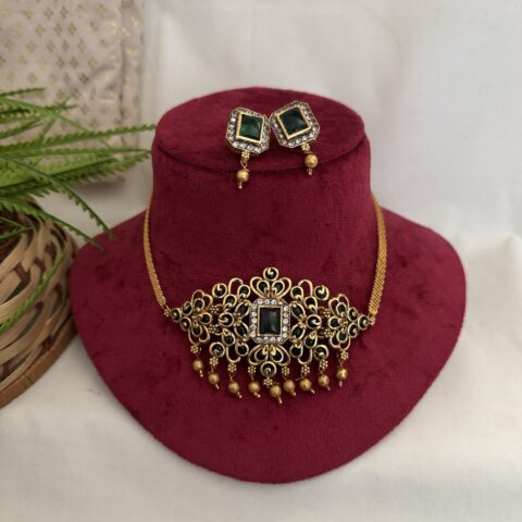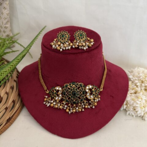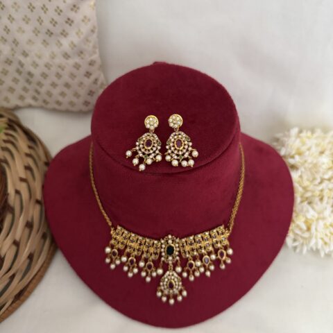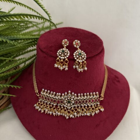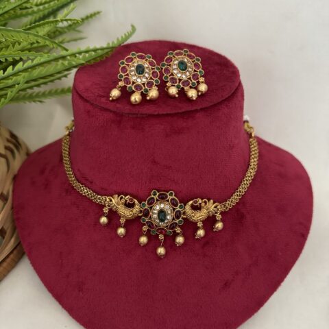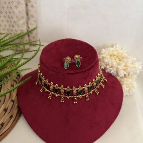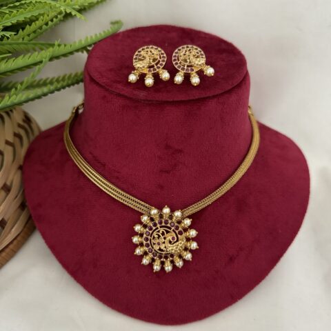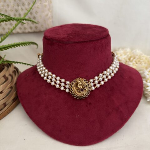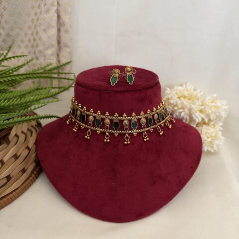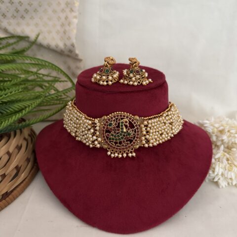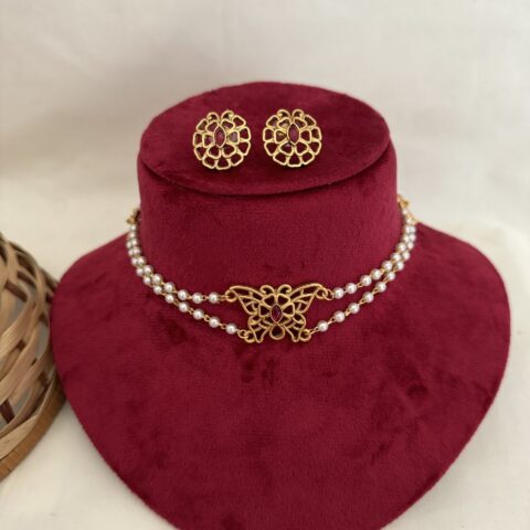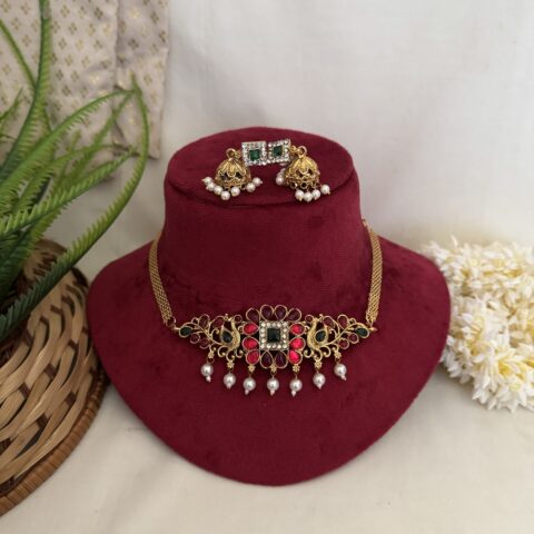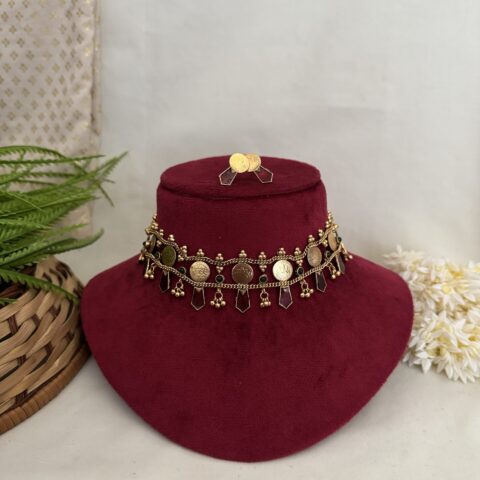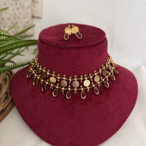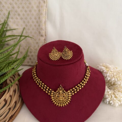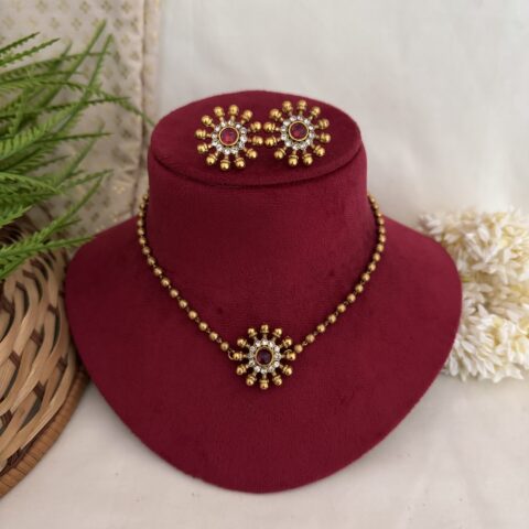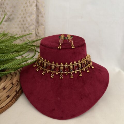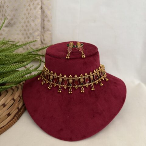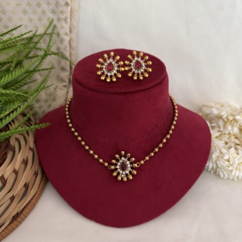 Golden Beaded Choker ( Thilagam ) – Ruby
