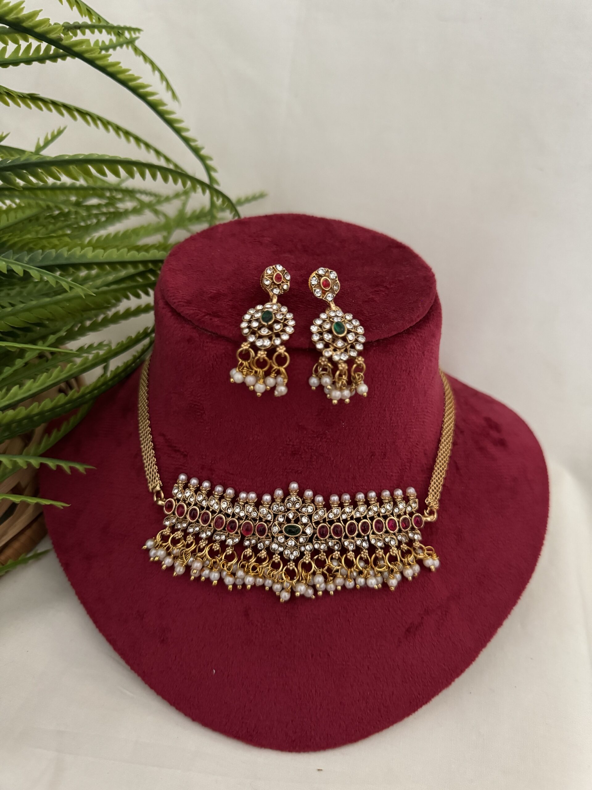 Golden Beaded Choker ( Thilagam ) – Ruby