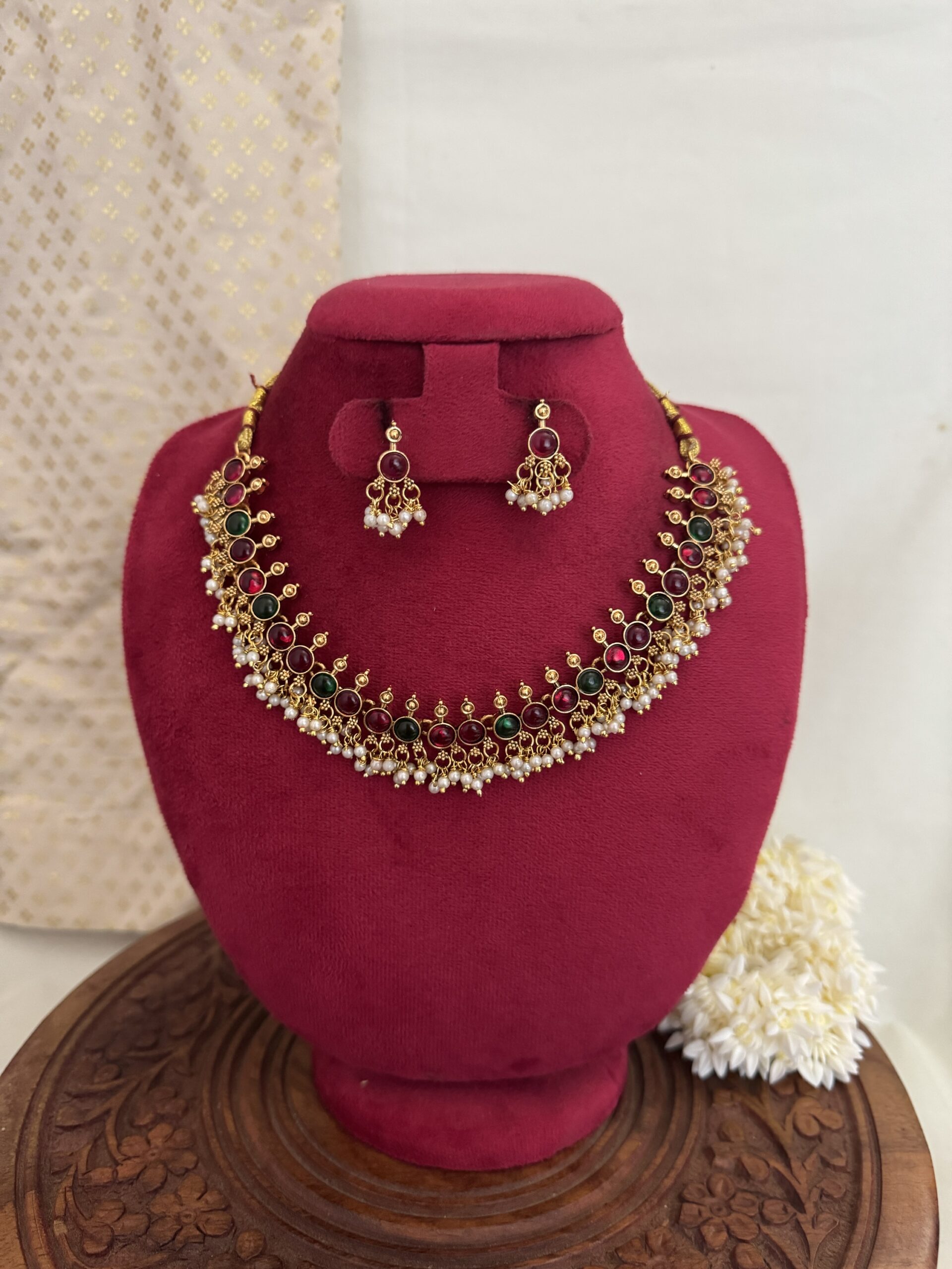 Golden Beaded Choker ( Thilagam ) – Ruby