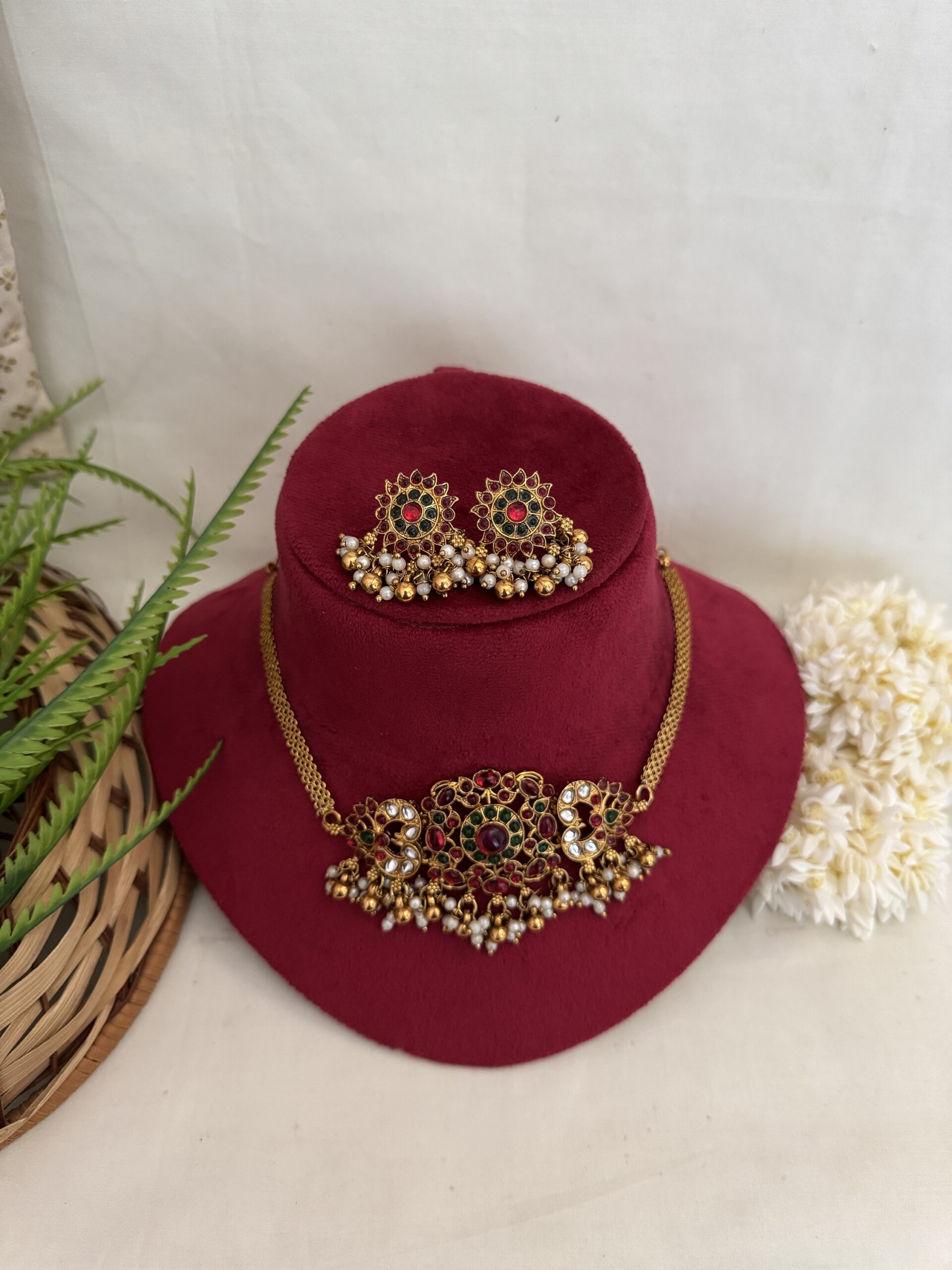 Golden Beaded Choker ( Thilagam ) – Ruby