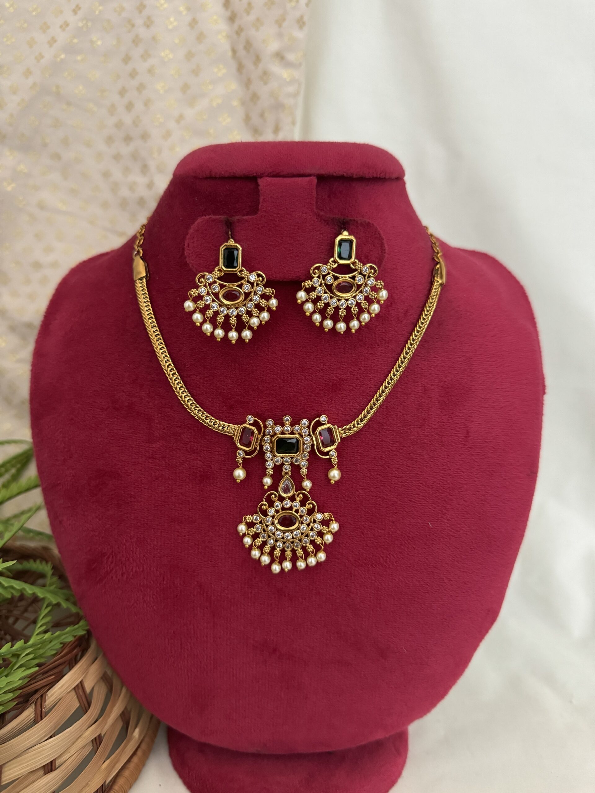 Golden Beaded Choker ( Thilagam ) – Ruby