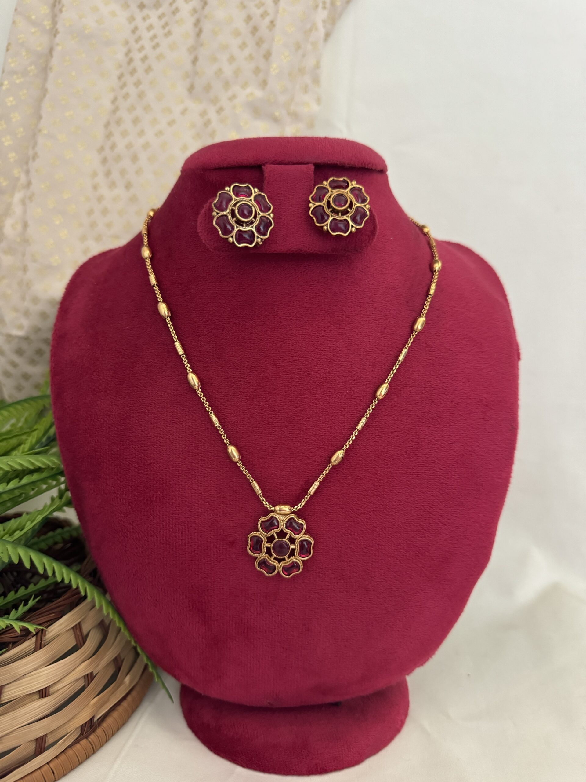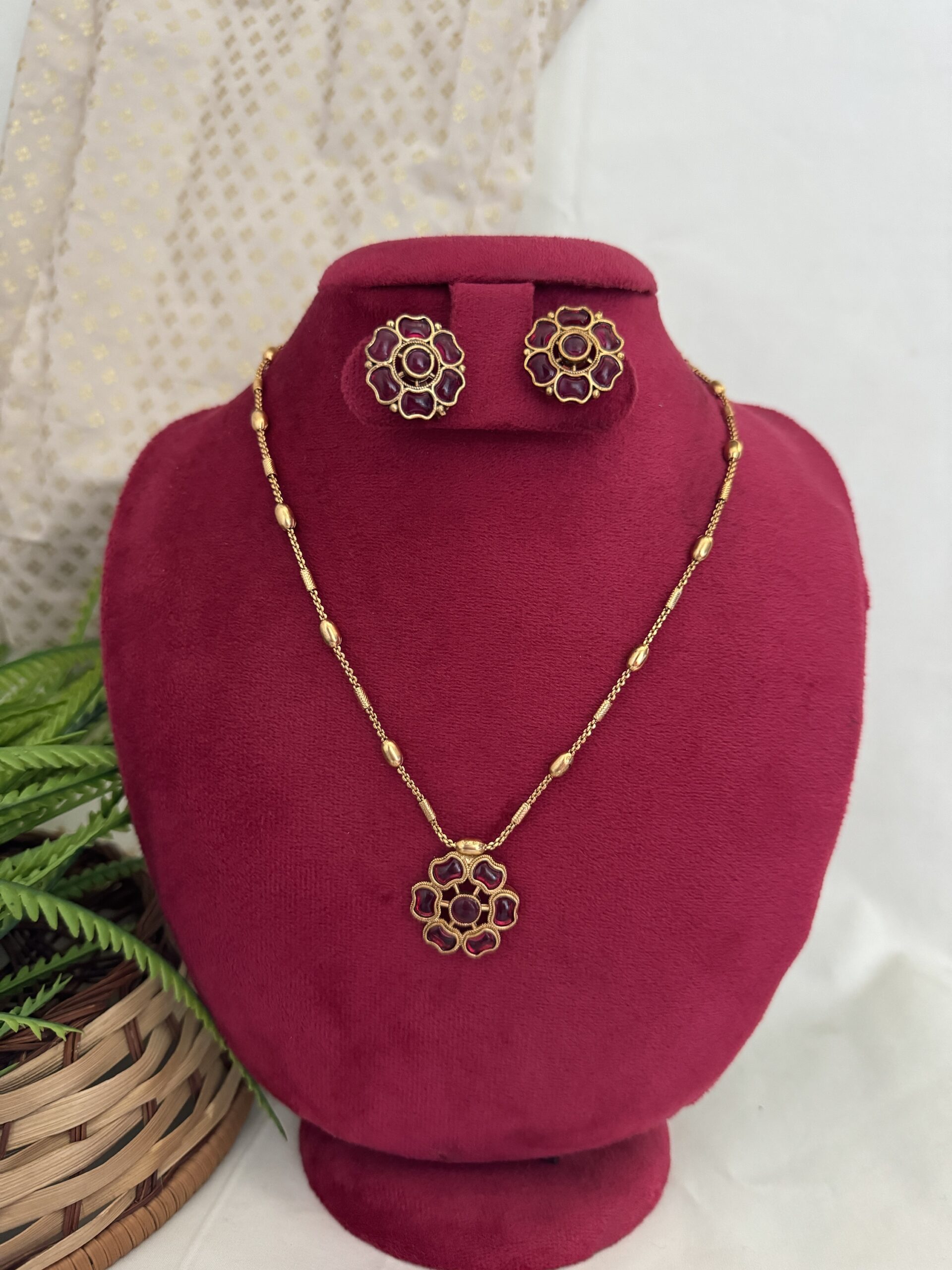 Kanchana Floral Chain Set – Ruby