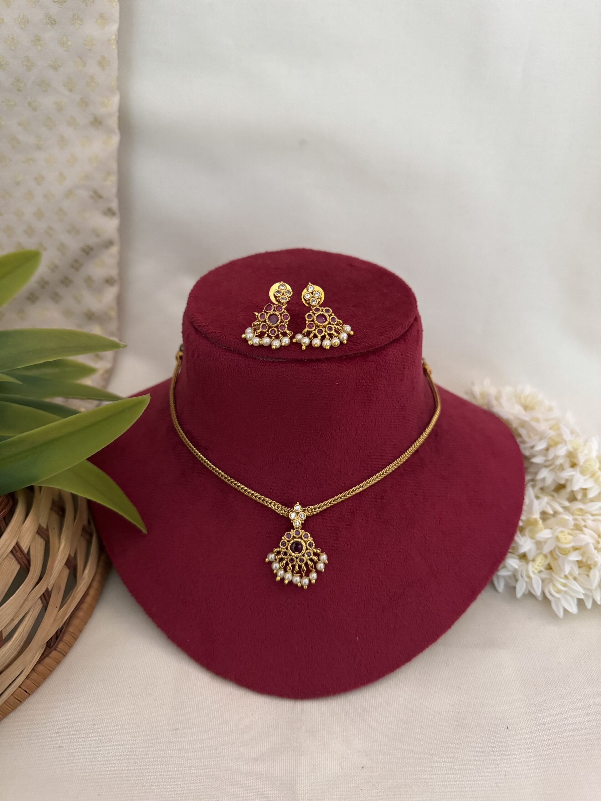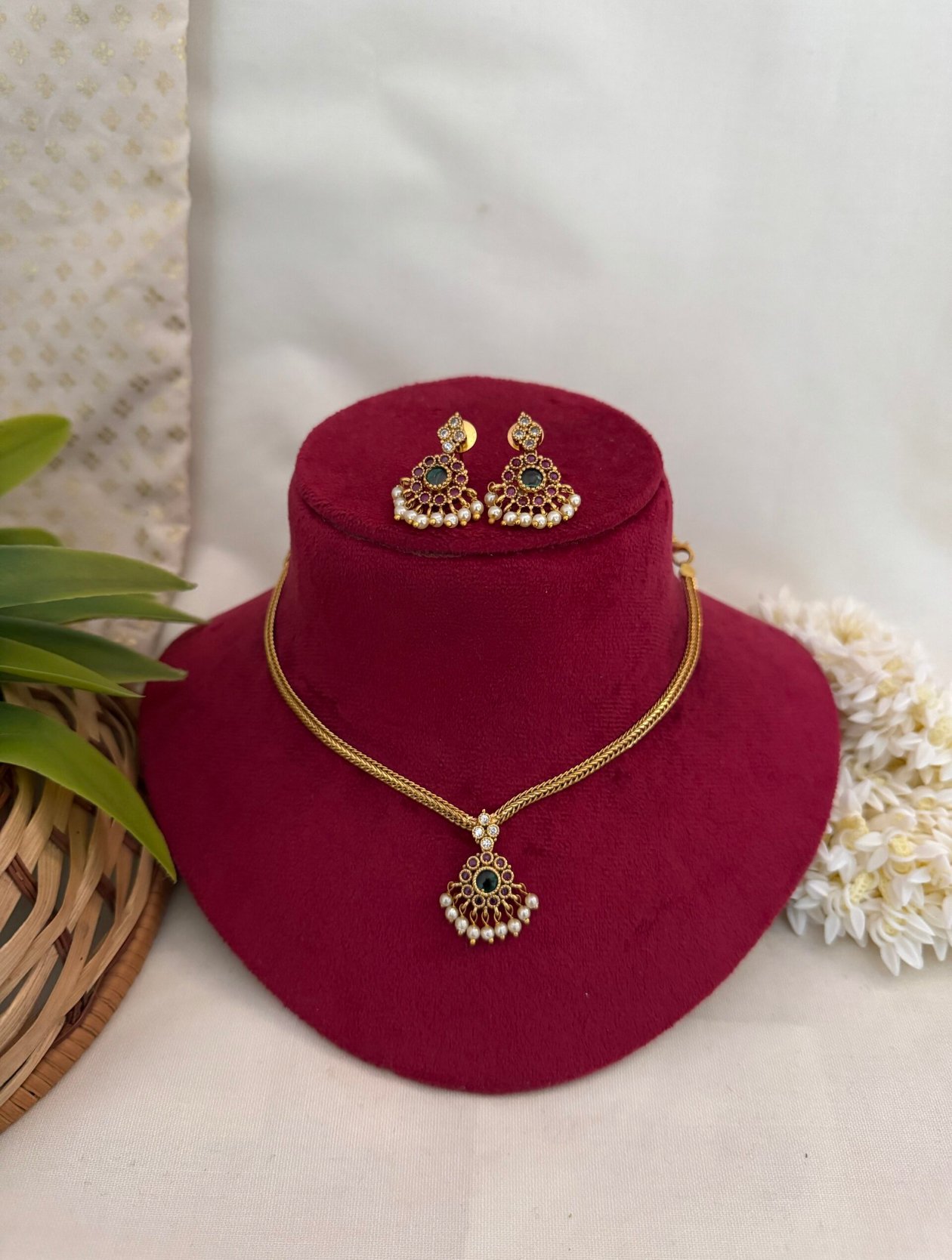 Golden Beaded Choker ( Thilagam ) – Ruby