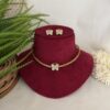 AD Coral Party Wear Diamond Necklace With Earrings – Pastel Pink