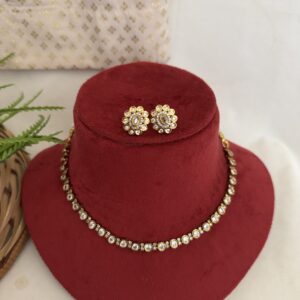 AD Coral Party Wear Diamond Necklace With Earrings – Pastel Pink