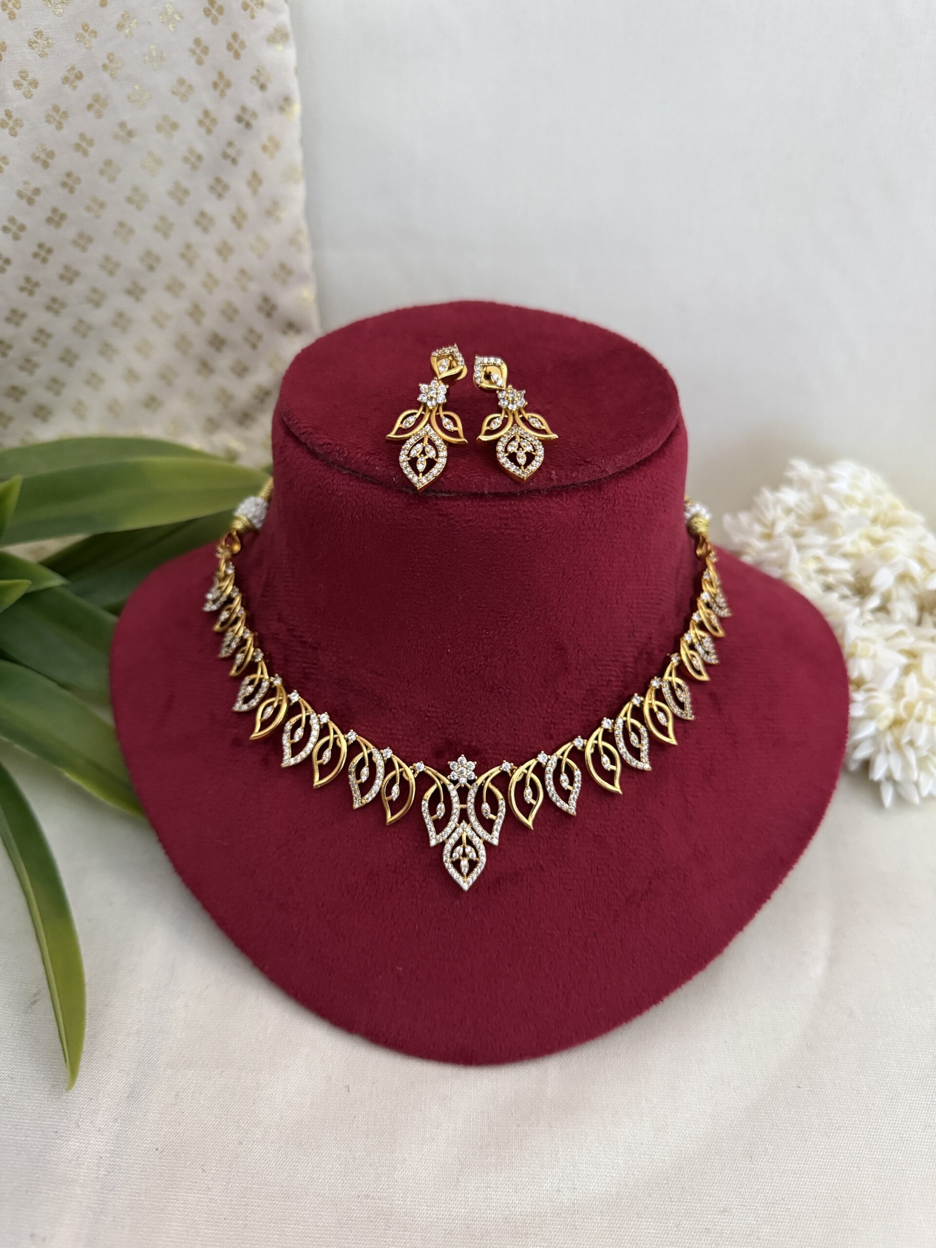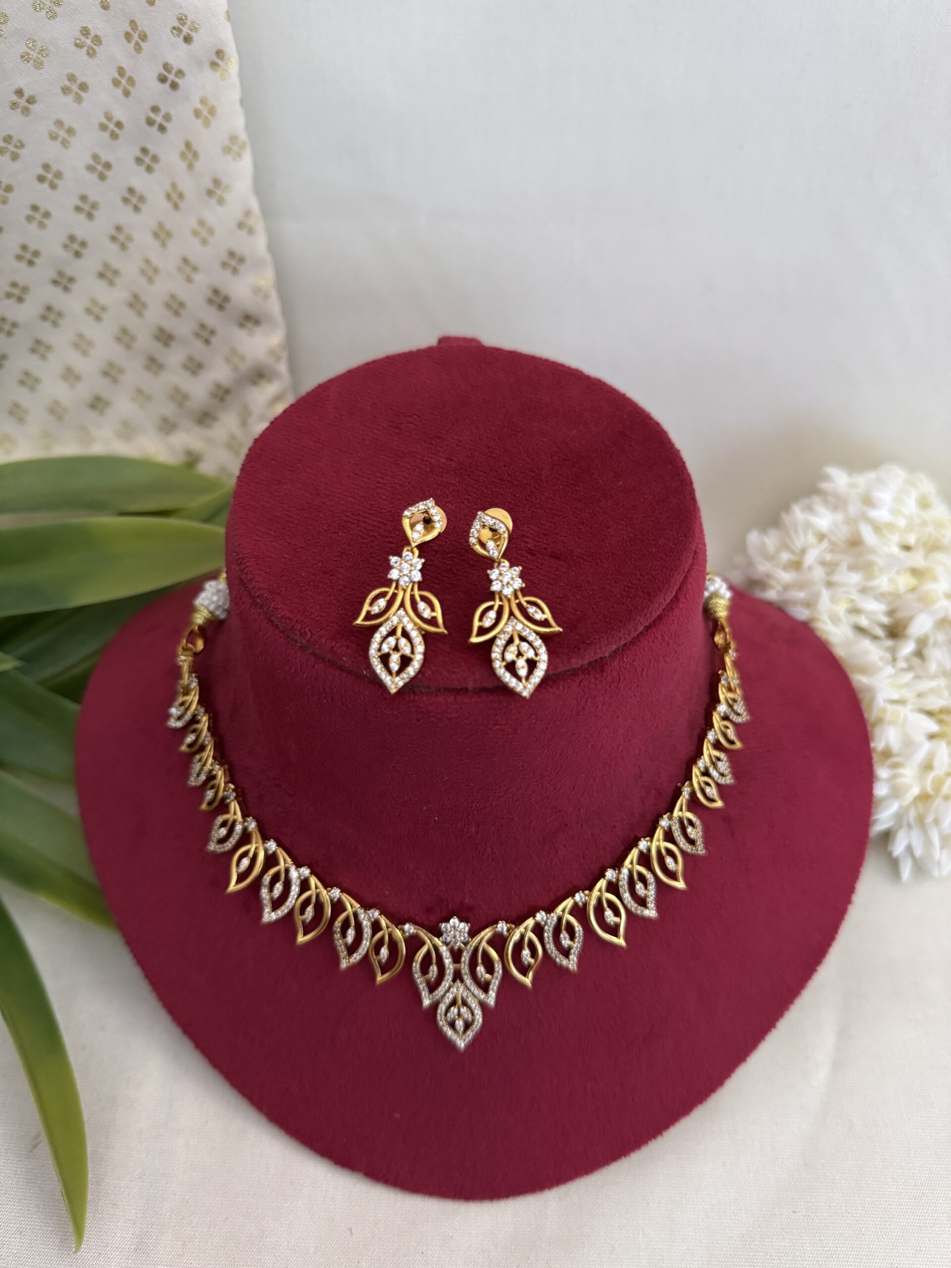 AD Coral Party Wear Diamond Necklace With Earrings – Pastel Pink