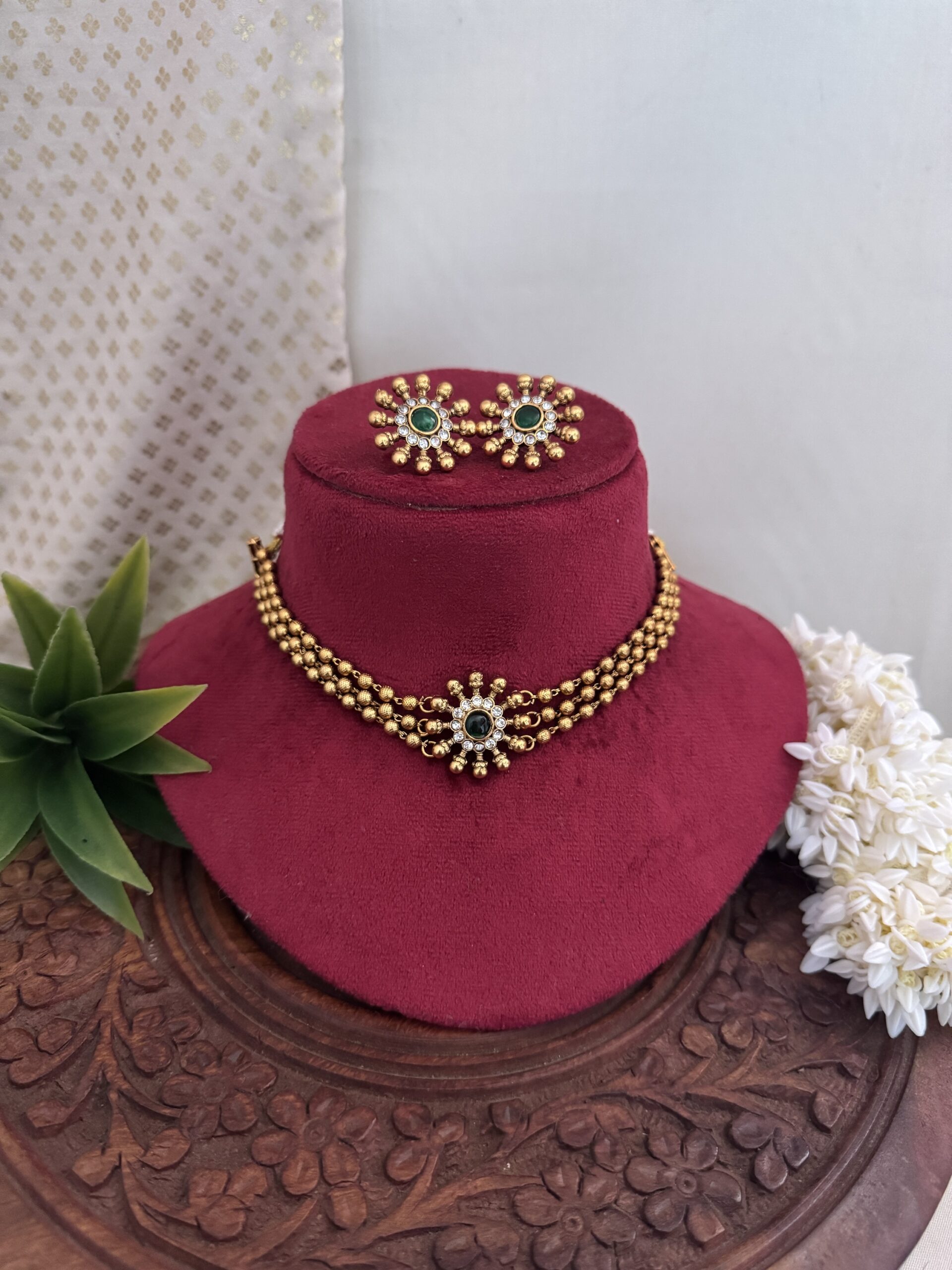Golden Beaded Choker ( Round) – Green
