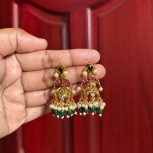 Kalyani Green Pearl Jhumkas