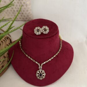 AD Coral Party Wear Diamond Necklace With Earrings – Pastel Pink