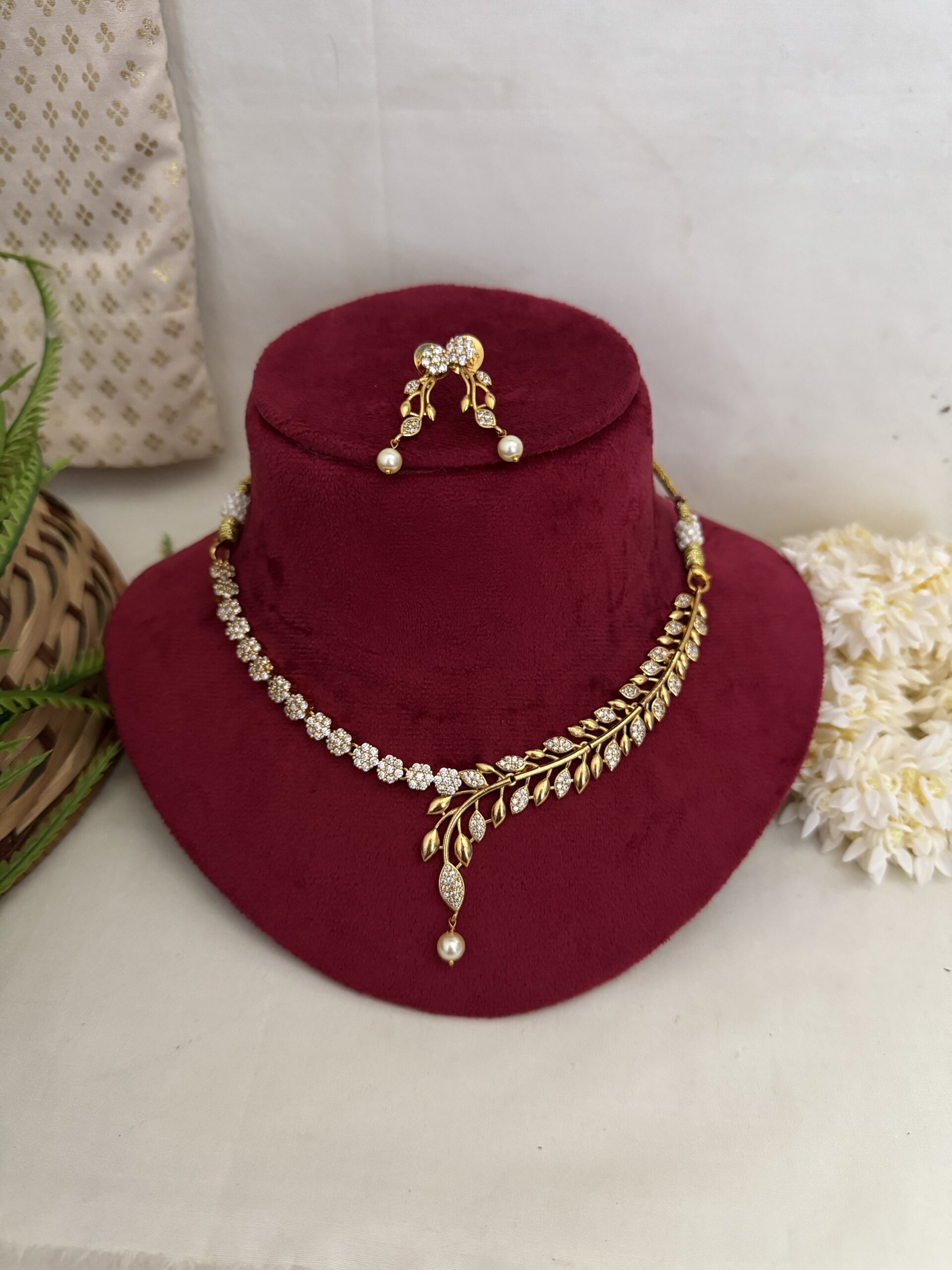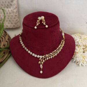 AD Coral Party Wear Diamond Necklace With Earrings – Green