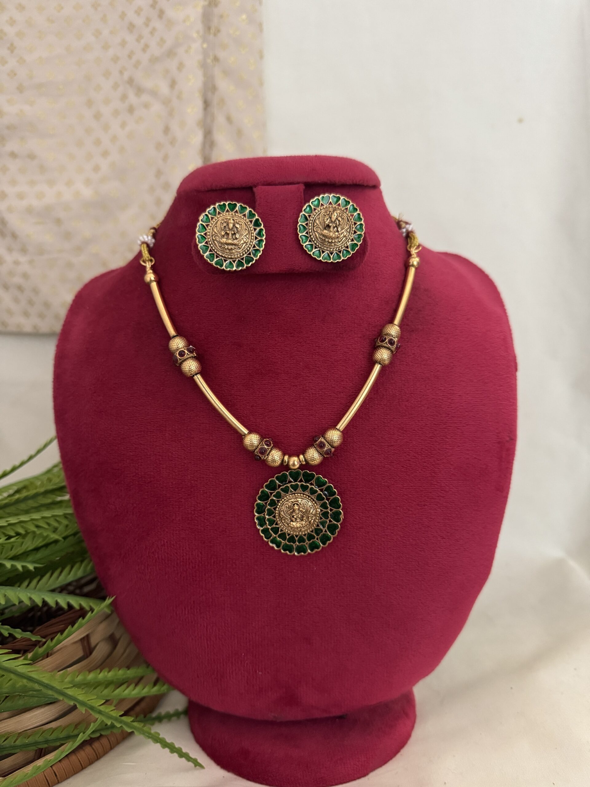 Golden Beaded Choker ( Round ) – Green