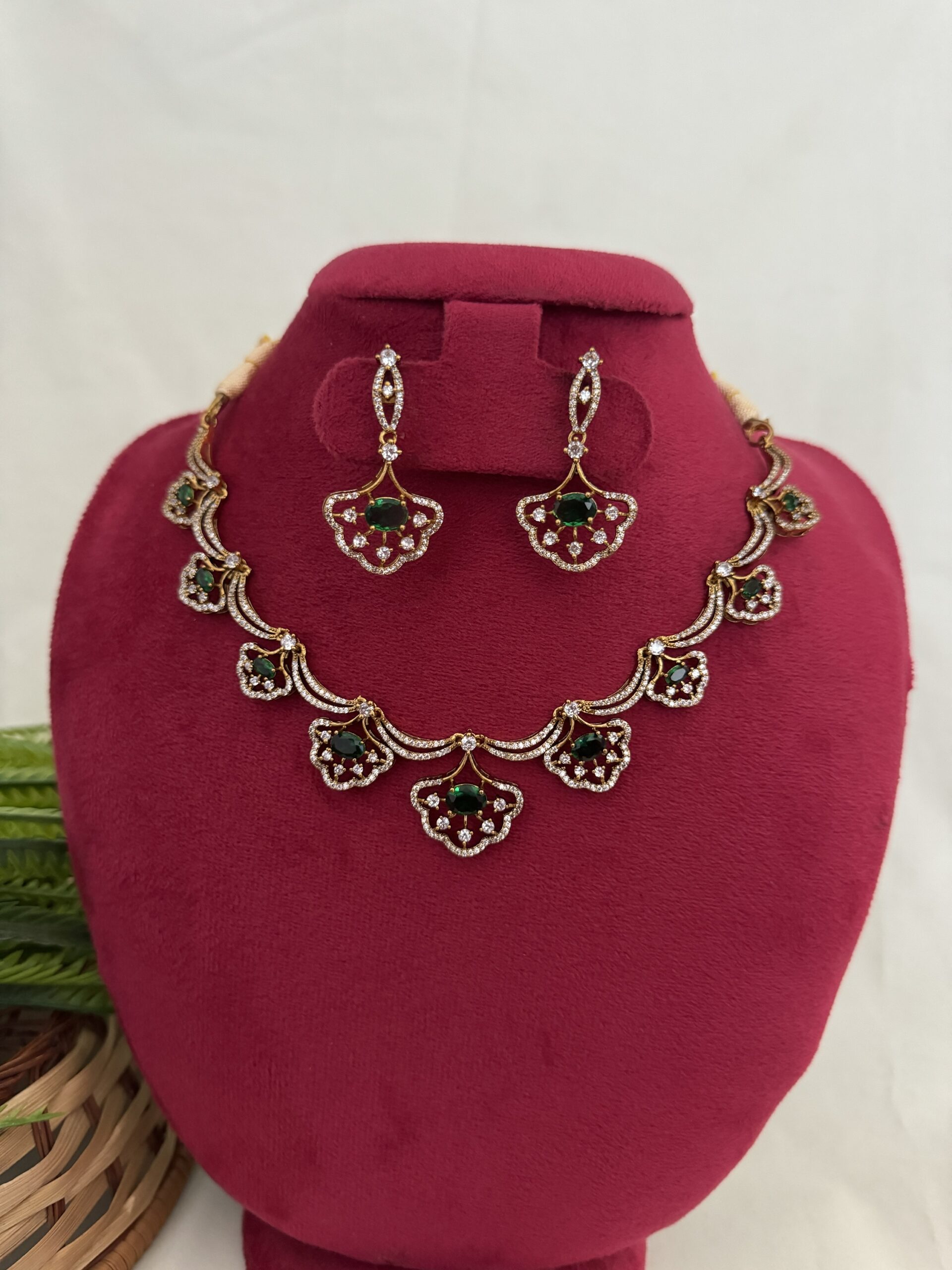 Be the first to review “AD Coral Party Wear Diamond Necklace With Earrings – Green” Cancel reply