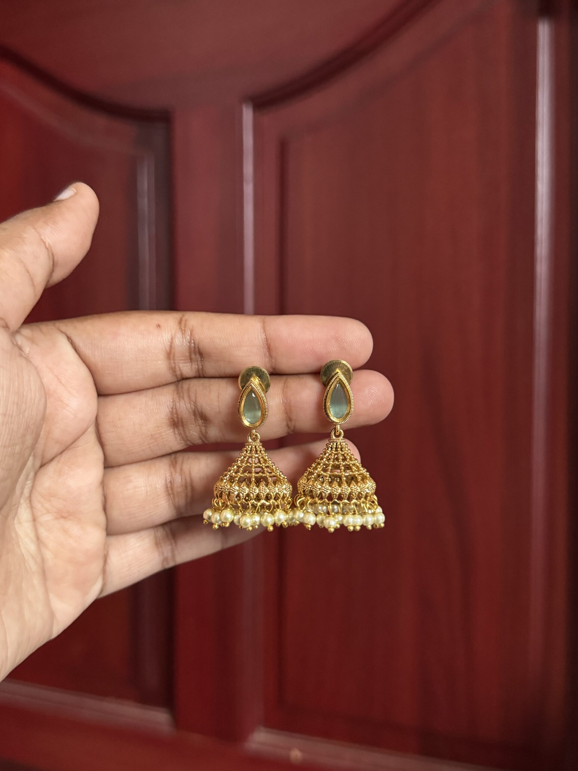 Meghna Dome Jhumkas – Pastel Blue
