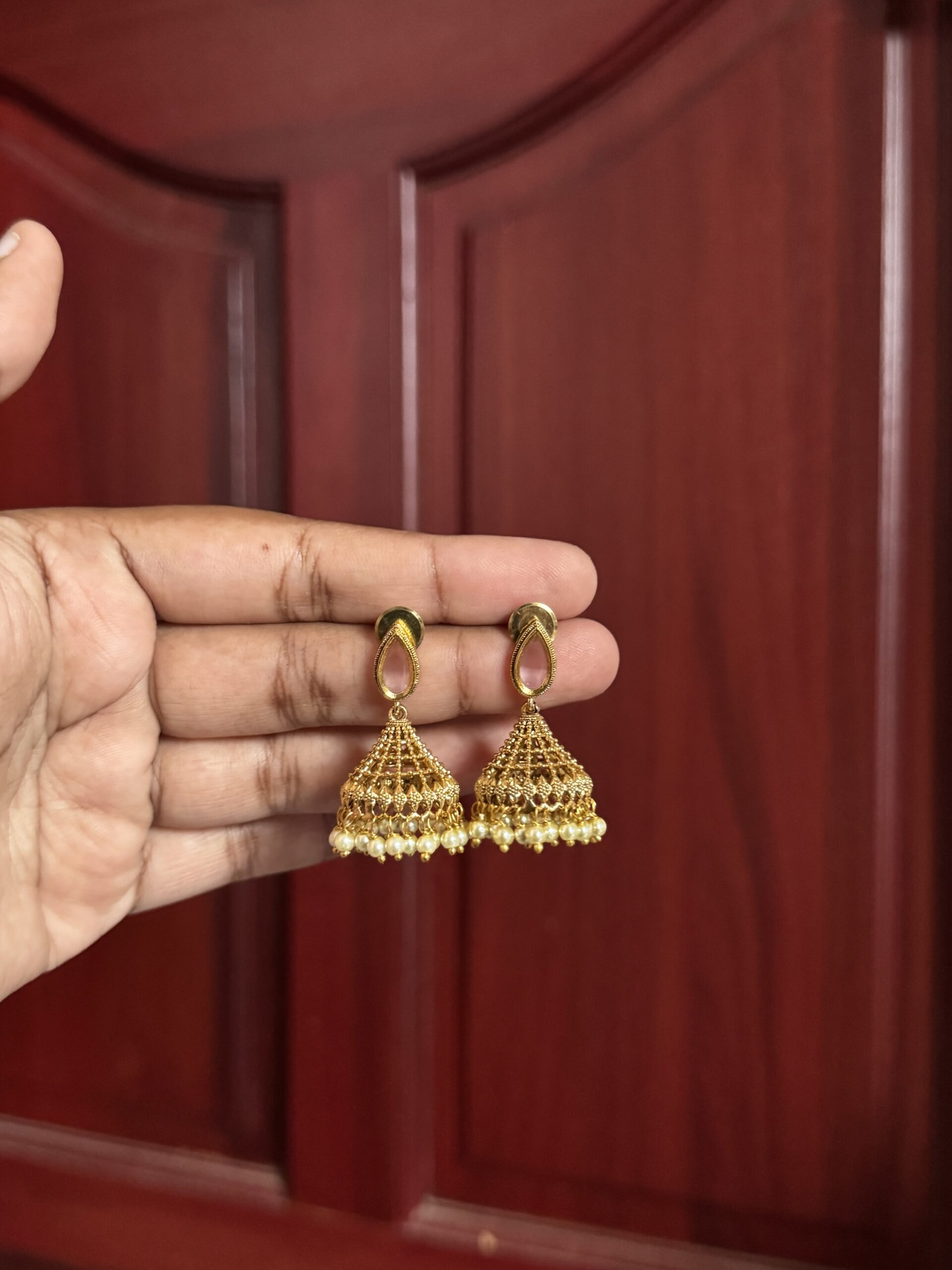 Meghna Dome Jhumkas – Pastel Pink