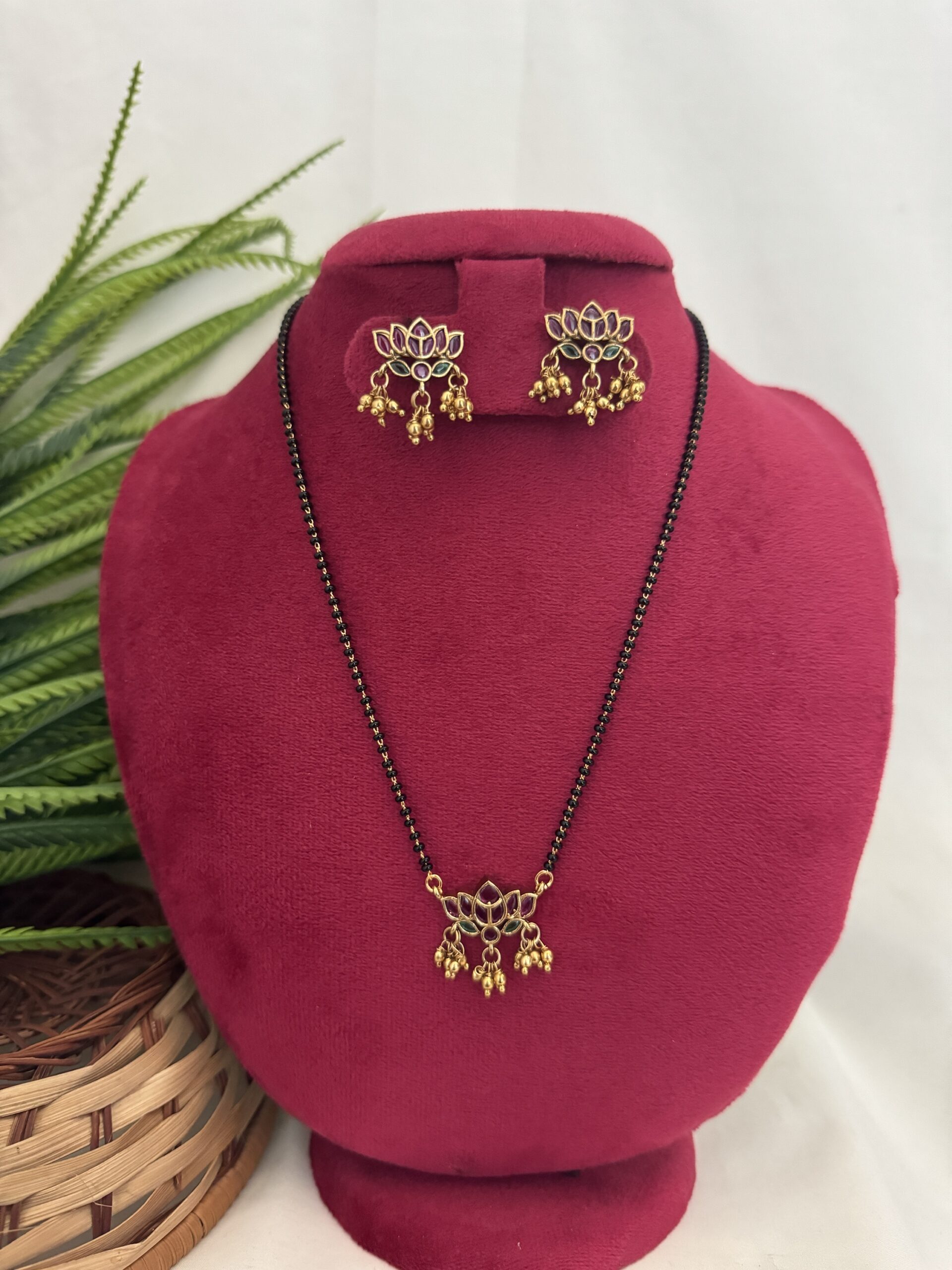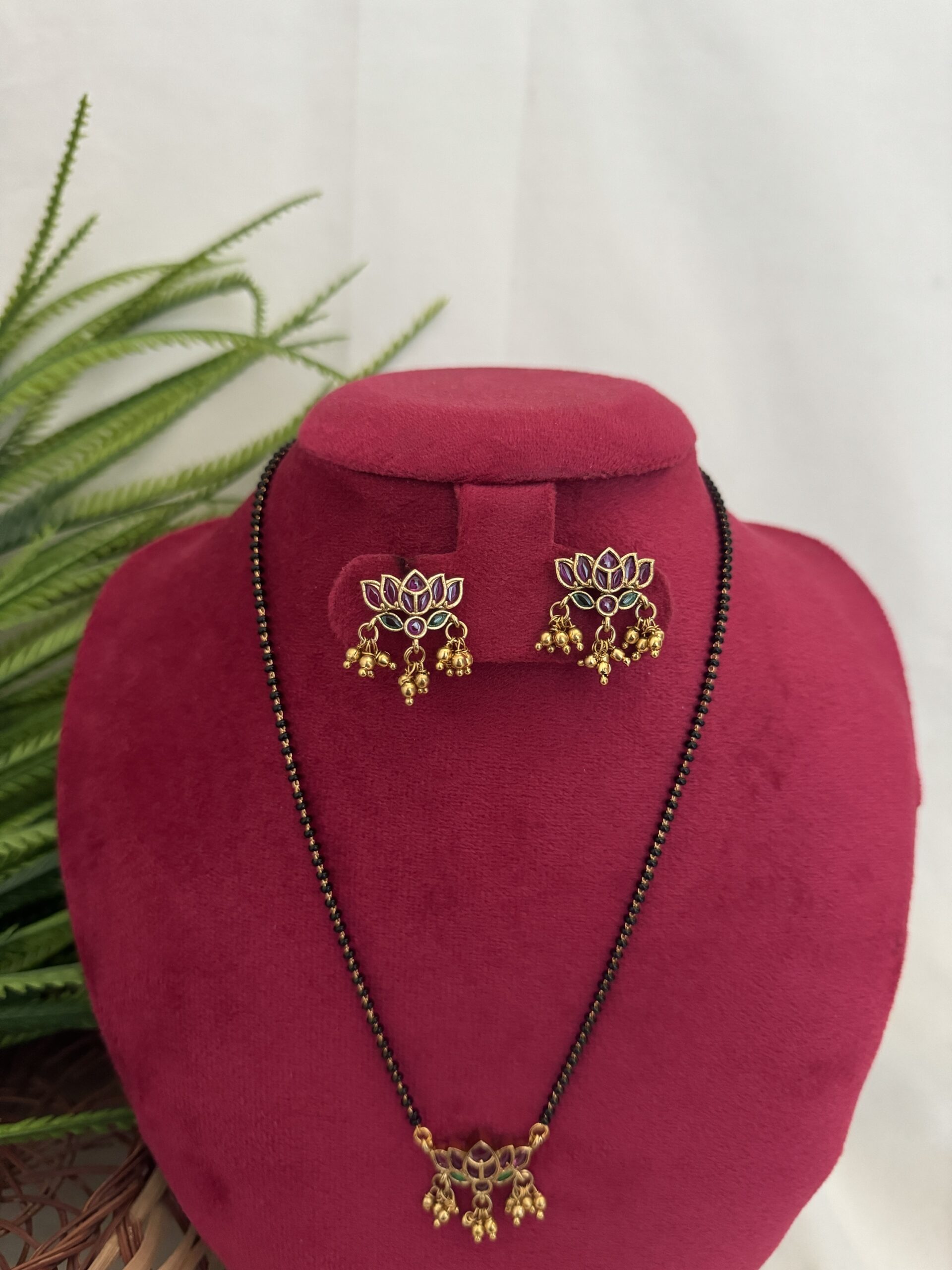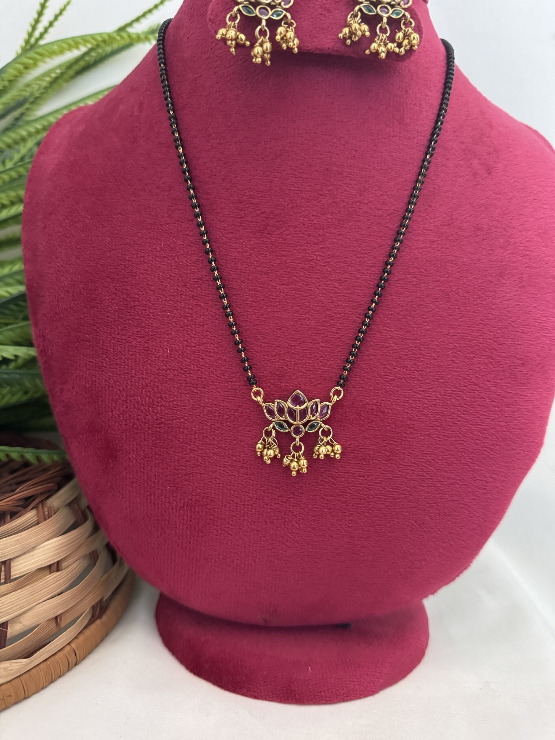 Premium Lotus Mangalsutra – Ruby Mix