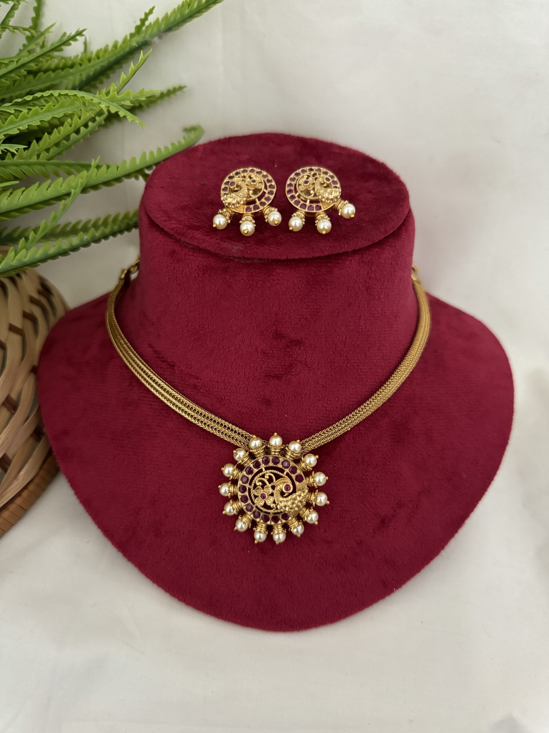 Premium Peacock Choker – Ruby