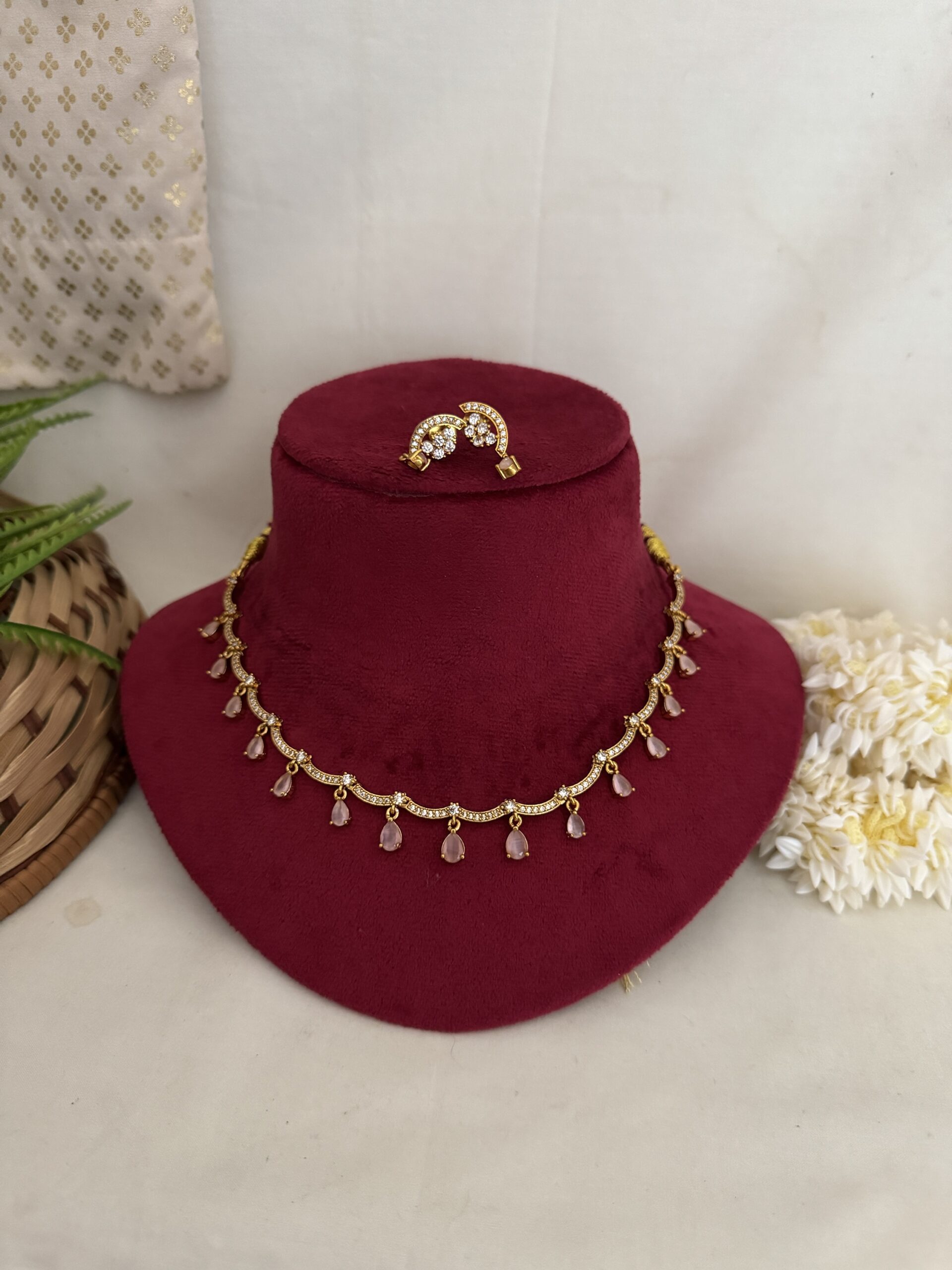 Saanvi Tearstone Necklace – Pastel Pink