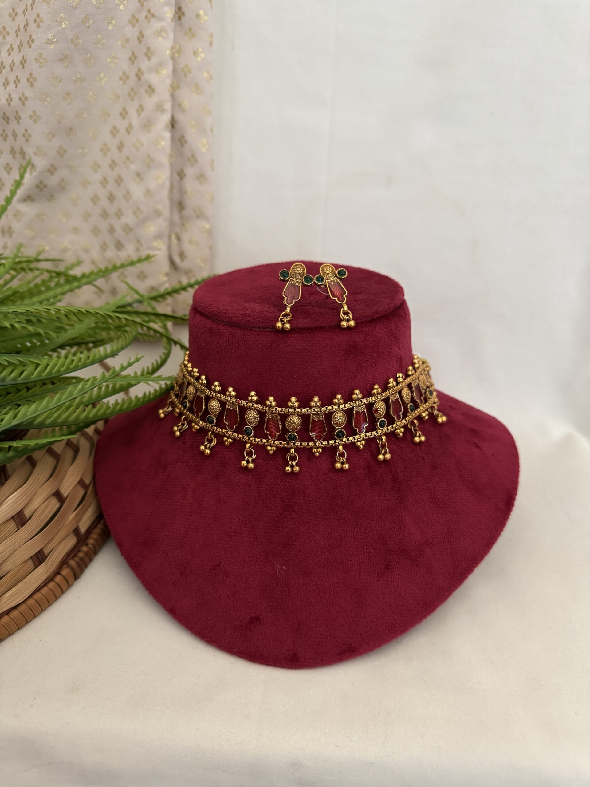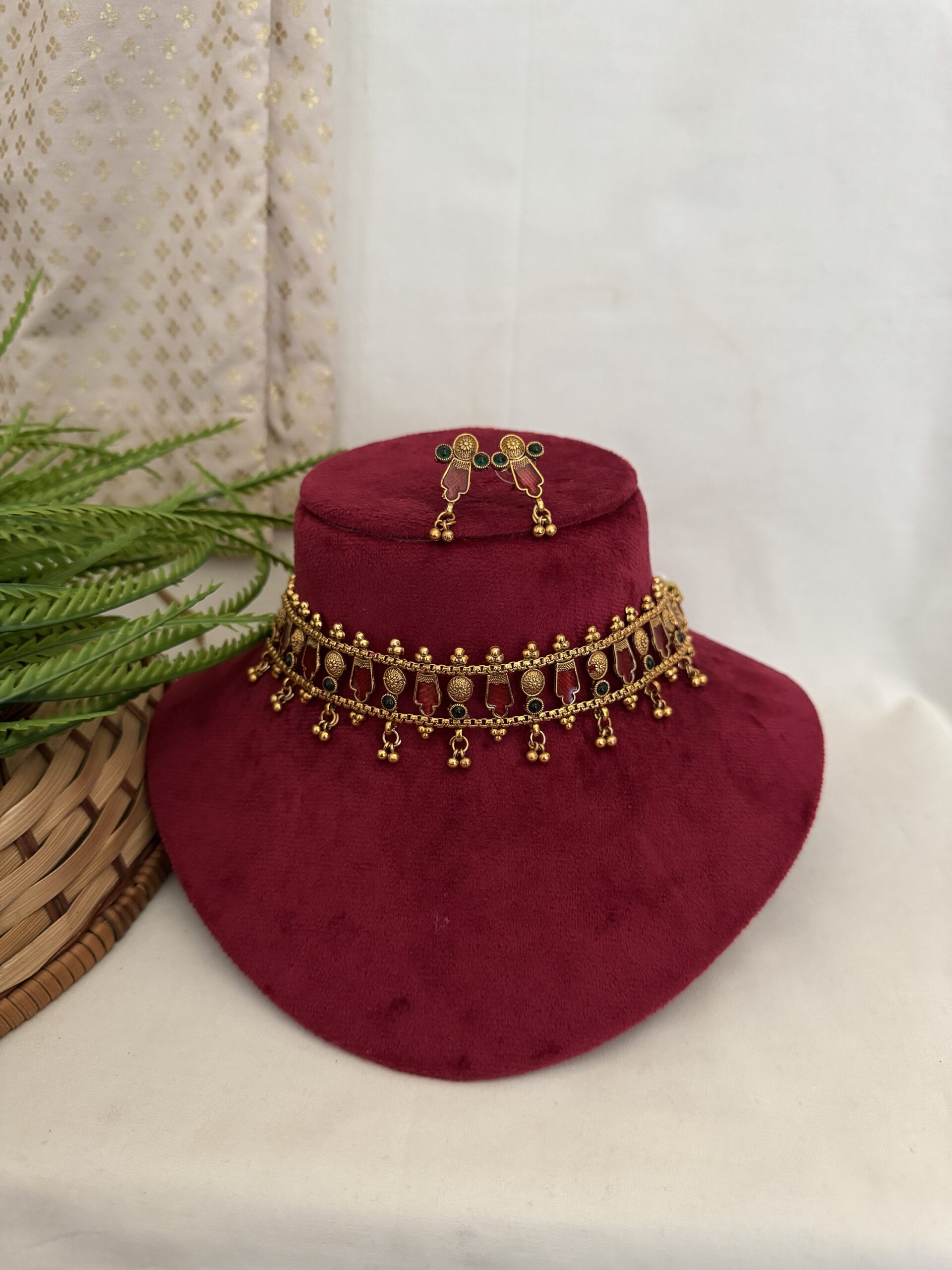 Golden Beaded Choker ( Thilagam ) – Ruby
