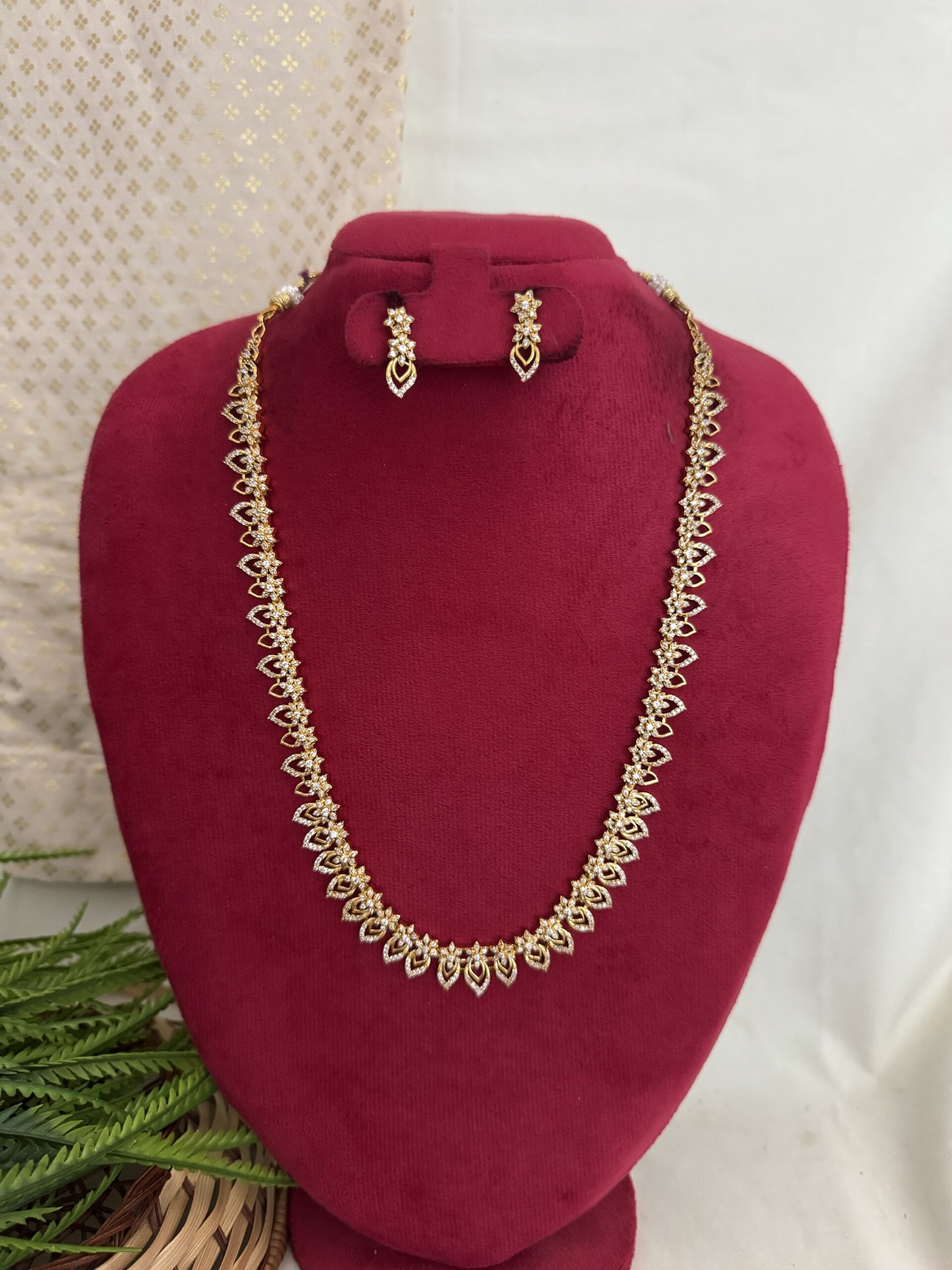 AD Coral Party Wear Diamond Necklace With Earrings – Green