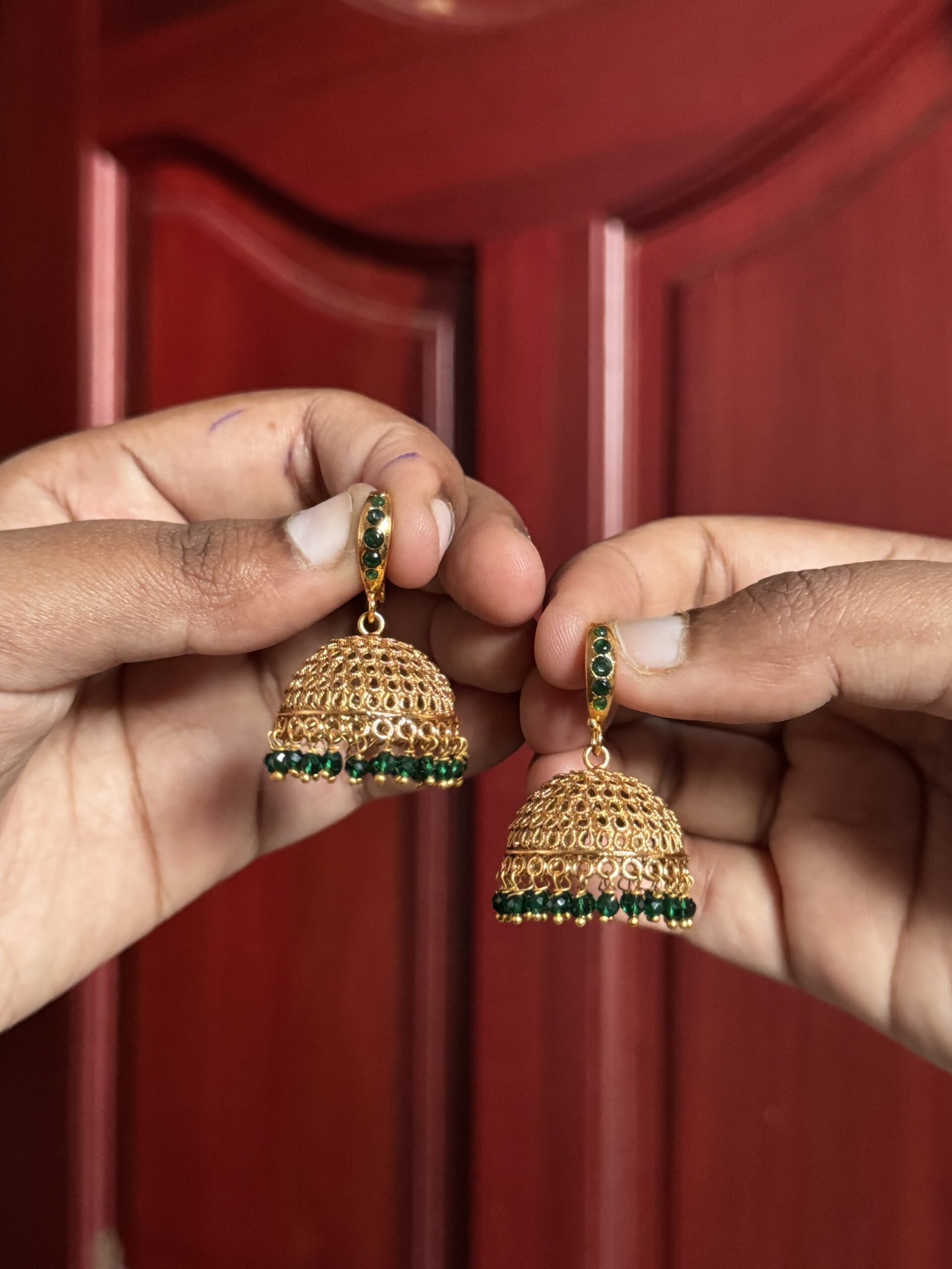 Be the first to review “Veda Gold Hook Jhumka – Green” Cancel reply